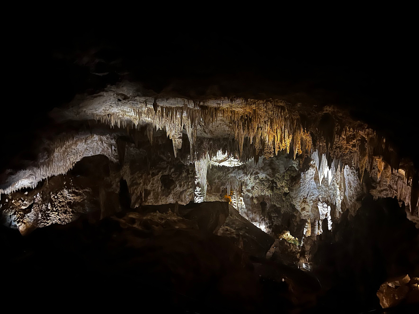 While the reflection of the sun on the white sand nearly blinded us in the dunes, our next stop at Carlsbad Caverns had our eyes adjusting to the darkness in another alien landscape. We also learned that bat guano used to be mined here by the ton for use in fertilizers.