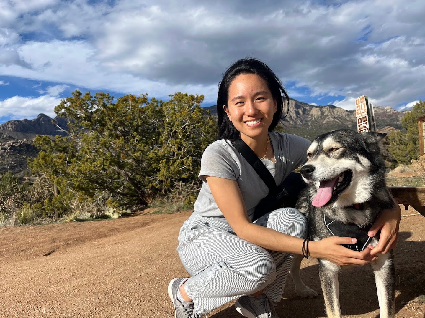 Our housesit in Albuquerque was in the farms with a husky mix who had an underbite and welcomed us on our first day by leaving us a nervous pee puddle on our bed. Her demands for belly rubs and silly antics quickly won us back over.